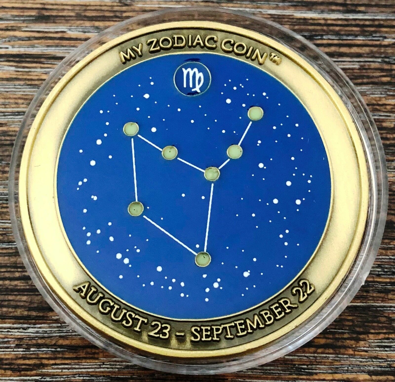 My Zodiac Coin - VIRGO - Swarovski® Crystals, 3D, Glow-In-The-Dark - Gold Finish